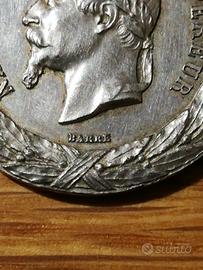 Medaglia francese di Napoleone III per i soldati Reduci della campagna d'Italia, a sostegno del Risorgimento italiano. In argento.