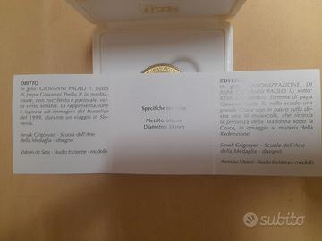 Dritto: in giro, GIOVANNI PAOLO II. Busto di papa Giovanni Paolo II in meditazione, con zucchetto e pastorale, volto verso sinistra. La rappresentazione è ispirata ad immagini del Pontefice del 1999, durante un viaggio in Slovenia.