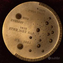 Rara medaglia commemorativa del Club Alpino Italiano (CAI) di Milano, coniata in occasione del centenario (1873-1973) della sezione e della Stazione Meteorologica Alpina. Questa medaglia in bronzo celebra le attività delle storiche scuole come la Scuola Nazionale d'Alta Montagna A. Parravicini e la Scuola di Sci Alpinismo M. Righini, oltre a importanti imprese alpinistiche e esplorative. Il dritto presenta una dedica poetica a tutti coloro che hanno raggiunto i loro obiettivi (il loro "punto" e la loro "cima"). Opera firmata dall'incisore S. Casati. Pezzo di grande interesse storico e collezionistico, in particolare per gli appassionati di storia dell'alpinismo e del CAI. Le condizioni sono ottime (verificare l'immagine). Ho tantissimi altri pezzi da collezione (monete, banconote e francobolli) ancora non presenti online. Ritiro a mano, zona di Milano Sud Ovest, fermata della metropolitana MM1 Bisceglie.