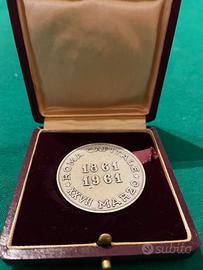 1861 - 1961 I IN ARGENTO 800 CONFEZIONE ORIGINALE ASTUCCIO IN PELLE DIAMETRO 40 mm PESO 25 gr