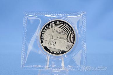 Il rovescio della medaglia mostra l'edificio del Parlamento tedesco, la famosa torre della televisione di Berlino e il logo della World Money Fair, e diverse iscrizioni inglesi e cinesi.