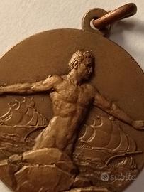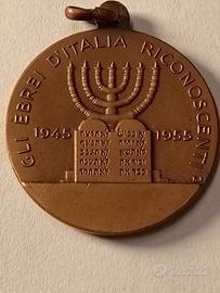 Medaglia commemorativa: Gli Ebrei Italiani Riconoscenti DRITTO: figura maschile eroica con braccia aperte in mare, tra scogli e due velieri.