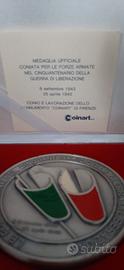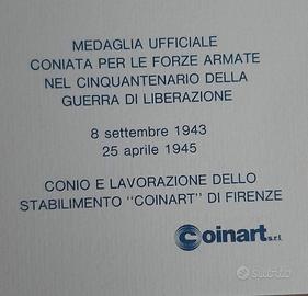 Medaglia ufficiale commemorativa coniata dalle Forze Armate in occasione del cinquantenario guerra liberazione conio e lavorazione COINART di Firenze diametro cm.8 in astuccio contenitore con certificato garanzia.