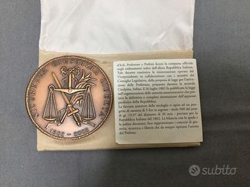 Medaglia commemorativa "Bicentenario dell'Istituto Prefettizio 1802-2002" con foglietto esplicativo, in metallo tipo bronzo. Diametro cm.8, peso gr.230. In ottime condizioni.