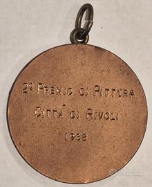 Medaglia commemorativa del concorso di pittura del 1968. - Raffigura un edificio storico o un castello. - Realizzata in bronzo. - Presenta un anello per appenderla.