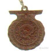 medaglia del Pescatore per Papa Pio IX , in bronzo , dimensioni cm 1,5 x 2 , al recto la tradizionale immagine della conchiglia , al verso disegno della Navicella e la scritta " Pius IX Anno XXXII - Piscapor Hominum - Peregrini Sumus Coram Te I.P XXXII - ben conservata