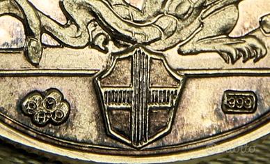 Peso grammi 15,55 - Argento proof (fondo specchio) titolo 999 millesimi - bordo zigrinato - ø 33 mm.