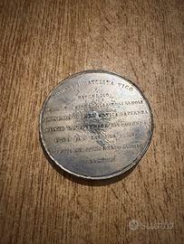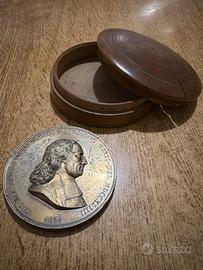Medaglia commemorativa di bronzo con firma dell’incisore Vincenzo Catenacci in custodia originale in legno (non integra).