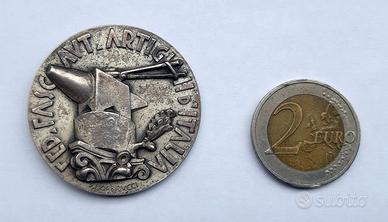 Interessante e rara medaglia d'epoca fascista di tipo “non portativa” realizzata in "grosso modulo" assegnata dal Regime come "PREMIO" durante la 4^ Edizione della Fiera dell’Artigianato Italiano svoltasi a Firenze nel 1934 (Anno XII° E.F.). La decorazione fu coniata interamente in Argento massiccio a firma del noto incisore “P. MORBIDUCCI”, che nella circostanza, anche a conferma di quanto il regime fascista fosse vicino alle varie classi lavoratrici italiane e nella fattispecie agli artigiani, incaricò uno dei maggiori artisti del Ventennio, per il realizzo del notevole e pregevole “design” di gusto “futurista” della stessa. Il cimelio si presenta in condizioni “ECCELLENTI” di conservazione, ancora in patina coeva, senza né difetti, né mancanze, né rotture alcuna. Infine le sue misure sono: diametro = 42 mm; peso = 35 grammi.