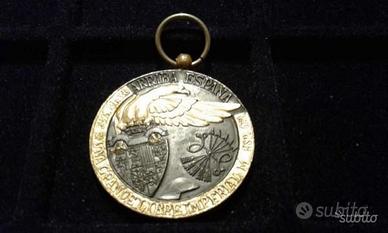 Cedo una bellissima e particolare medaglia, coniata in bronzo brumito e dorato, per la Campagna di Spagna svoltasi dal 1936 al 1939. L'ideatore del conio è Cap. D. Aurelio Perote Martinez. Fu istituita dal governo Franchista con decreto 26-1-1937 in un unico grado per ricompensare gli appartenenti alle "Fuerzas Nacionales" e i "Servizi di Retroguardia". Il fondo dell'insegna è brunito, al diritto sono dorati la corona laureata e la croce, al rovescio sono dorati la corona circolare inferiore l'aquila. La medaglia fu coniata dalla Ditta "Industrias Egana", Motrico (Guipuzcoa) successivamente nel maggio del 1938 venne concessa anche a molti volontari italiani partecipanti al conflitto spagnolo, ma non fu mai emanato, sicuramente per motivi politici, nessun provvedimento per autorizzare i possessori a fregiarsene. La tecnica usata per coniare questa medaglia ricorda quella caratteristica di Toledo del ferro o acciaio con oro. Questa medaglia è catalogata a pagina nr. 736 del Volume "Le medaglie italiane negli ultimi 200 anni" di Alessandro Brambilla. Tutto "rigorosamente" originale d'epoca al 100% e garantito. Spedizione: Raccomandata (7 euro); Metodi di Pagamento: Bonifico Bancario. Vaglia Postale, Paypal, altri sistemi postali, contrassegno. Diritto di Recesso entro 10 giorni.