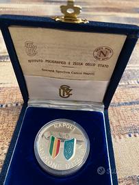 Medaglia commemorativa in argento del primo scudetto del grande Napoli 1986/87 certificata dalla zecca di stato, con francobollo e scrigno blu richiudibile. Ottime condizioni disponibile per spedizione immediata!