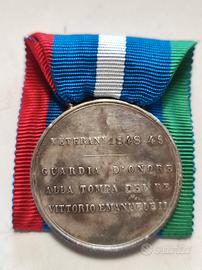 Medaglia d'argento per i Veterani 1848-49 guardia d'onore al Pantheon, tipo Umberto I, completa di nastro. Firmata S.J (Johnson)