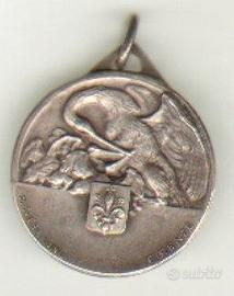 bella medaglia in argento , dimensioni cm 2,7 - al dritto , ritratto femminile in altorilievo , con la scritta " Patronato Emma Canevaro 1920- 28 " - al verso , incisione con un cigno che sfama i piccoli , stemma , e la firma " M. Nelli Inc . Firenze - buone condizioni