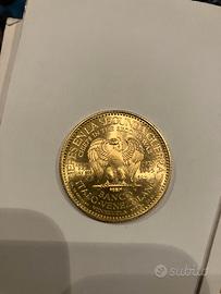 Medaglia in oro giallo titolo 900 grammi 22,2 coniata nel 1957 dal Banco Italo Venezuelano rappresentante mussolini nella seconda guerra mondiale 1939/1945