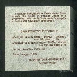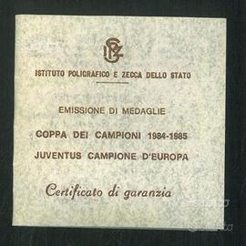 Medaglia celebrativa Juventus vincitrice Coppa dei Campioni 194-85 Argento peso 18 g diametro 35 mm certificato di autenticità dell'Istituto Poligrafico e Zecca dello Stato
