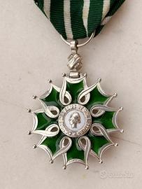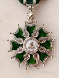 Questa medaglia in argento massiccio è composta da una croce bifacciale a otto punte smaltata in verde e ornata da un arabesco in argento. L'insegna centrale è composta da un monogramma raffigurante le lettere A e L intrecciate, circondato da un cartiglio recante l'iscrizione "République Française". Sul retro dell'insegna, è presente l'effigie della Repubblica circondata da un cartiglio recante l'iscrizione "Ordre des Arts et des Lettres". Il nastro è composto da cinque strisce verde scuro, separate da quattro strisce verticali bianche.