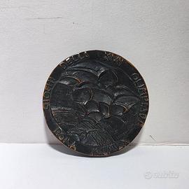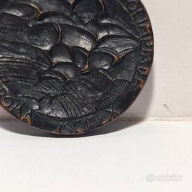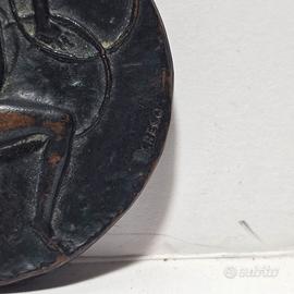 Medaglia in bronzo per i partecipanti ai GIOCHI DELLA XVII OLIMPIADE di Roma del 1960. Incisione firmata Emilio Greco. Patina del tempo, in alcune parti traspare il bronzo, ottime condizioni lievi colpetti al bordo.