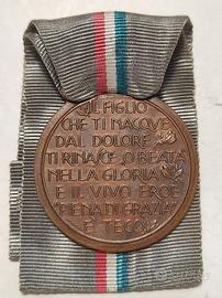 Medaglia di bronzo periodo regno per le madri dei caduti di guerra, completa di nastrino. Firmata: G Prini