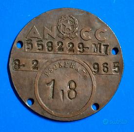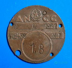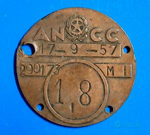 Tre Medaglie / Targhette in Rame della AN CC 1.8 – matricole MI 290173 datata 17/09/1957, MI 418439 datata 09/12/1961 e MI 558229 datata 08/02/1965. ANCC sta per l'Associazione nazionale per il controllo della combustione fondata nel 1927 con lo scopo di vigilare sulla sicurezza degli impianti nei luoghi di lavoro e rimasta attiva fino al 1979. Vendo anche singolarmente