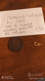 Splendida medaglia pontificia del 1848,in ricordo dei moti di Vicenza,cedo e spedisco.ricordo dei volontari della Città del Vaticano prezzo 27 euro