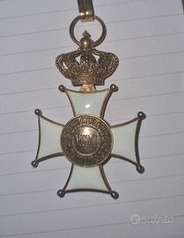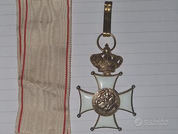 Ordine dei Grimaldi Monaco – medaglia originale con nastro (Rainier III) Vendo autentica medaglia dell’Ordine dei Grimaldi del Principato di Monaco, istituito dal Principe Rainier III nel 1954. Croce smaltata bianca con corona principesca, completa di nastro originale bianco con bordi rossi. Sul fronte è presente la scritta “Rainier Grimaldi Prince de Monaco”, mentre sul retro “MCML Principauté de Monaco”. Medaglia originale d’epoca, non replica. Condizioni buone con normali segni del tempo, smalti ben conservati. Ideale per collezionisti di ordini cavallereschi e militaria.