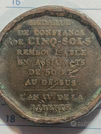 medaglia importante 5 sols 1792 rivoluzione francese la spedizione da concordare non vendo con tutto subito