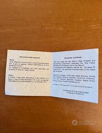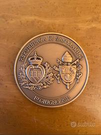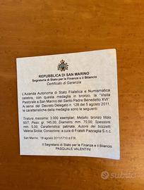 Medaglia in bronzo che celebra la visita di papa Benedetto XVI a San Marino il 19 Giugno 2011. Con confezione originale e certificato di garanzia.