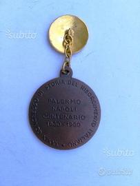 RARA MEDAGLIA DEL XXXIX CONGRESSO DI STORIA DEL RISORGIMENTO ITALIANO PALERMO-NAPOLI 1860-1960, CONIATA DAGLI STABILIMENTI JHONSON DI MILANO. INTERESSANTE IL SISTEMA PER LA SOSPENSIONE COMPOSTO DA UN BOTTONE IN METALLO D'ORATO