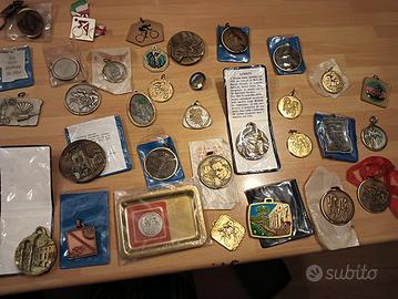 57 medaglie commemorative anni 80 di competizioni,trofei ciclistici fvg veneto praticamente tutte nelle proprie confezioni