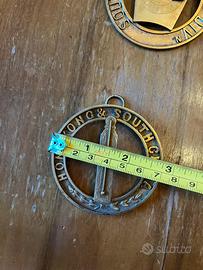 Lotto composto da quattro medaglie in metallo dorato, brunito, appartenenti a diverse logge e gradi:South Africa central division, Madras (deputy), Hong Kong &South China,Neustrie. Presentano simboli tipici della tradizione massonica(squadra ,spade incrociate, colonne. Probabile produzione metà/fine novecento. Buone condizioni generali con naturale patina del tempo. Per il lotto 120 €. oppure singolarmente 35 €.