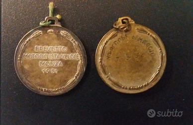 due belle medaglie per gare di motociclette. una del moto club Ticinese , sul retro ; brevetto motociclista veloce Monza 1951 e una del motocross di Maggio 7-5- 1950 il prezzo é per la coppia posso spedire.
