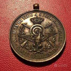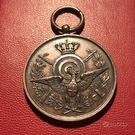 Antiche medaglie della Società di Tiro a Segno Nazionale risalenti al periodo a cavallo tra l'Ottocento e il Novecento, durante il Regno d'Italia. Queste medaglie erano utilizzate come premio per le gare di tiro. Il dritto presenta un'aquila araldica con uno scudo sabaudo sul petto, sormontata da una corona reale. Il retro mostra un bersaglio e due fucili incrociati, circondati da rami d'alloro e quercia. Esemplari simili sono stati coniati da Johnson di Milano. Due medaglie Ø 3,1 cm. circa e due Ø 2,7 cm. circa. Il prezzo è per l’intero lotto di quattro pezzi.