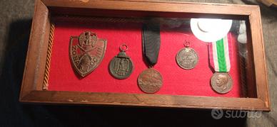 cofanetto in legno per medaglie, spille,ecc interno in panno per poter fissare con delle spillette...può essere posto sia in verticale che in appoggio.... (le medaglie non sono comprese,ma dimostrative del funzionamento è misure .. valuto offerte sensate per l'oggetto in se. per info è altro contattare