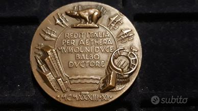 Meravigliosa nonché' "rarissima" medaglia della ditta Lorioli emessa come medaglia ufficiale commemorativa, si tratta in realtà di una medaglia ricordo. L'impresa di Italo Balbo ebbe un rilevantissimo successo a livello internazionale specialmente negli Stati Uniti, a New York dove l'entusiastica accoglienza riservata ai prodi fu pari a quella per i reduci dalla guerra mondiale e simile per quella che ci sarà, 36 anni dopo, per i primi astronauti lunari. A Chicago fu intitolata al Maresciallo dell'Aria una strada e nella terminologia aeronautica anglosassone "Balbo" sta ad indicare una massiccia formazione di aerei. La medaglia è stata coniata in bronzo dal diametro monstre di 61mm. Al dritto la scritta CROCIERA AEREA DEL DECENNALE ROMA CHICAGO NEW YORK ROMA, testa stilizzata a sx turrita con stella sul capo, allegoria dell'Italia, in basso P. MORBIDVCCI. Al rovescio tra grattacieli a sx e il Colosseo e l'arco di Tito a dx, il mare in basso, aerei sul bordo in alto e sopra orso polare, nel campo REDIT ITALIA PER AETHERA MVSSOLINI DVCE BALBO DVCTORE, in esergo fascio littorio e scritta MCMXXXIII XI. I "giusti" riferimenti per i collezionisti, sono a pag. 694 del testo del professor Alessandro Brambilla - "Le medaglie italiane negli ultimi 200 anni", massimo luminare in materia, assieme al professor Casolari che la classifica nel suo monumentale lavoro con numero XI-15. Tutto "rigorosamente" originale d'epoca al 100% e garantito! La medaglia si presenta in buonissime condizioni reca solo un colpo al ciglio destro verso ore 3 e altri piccolissimi colpetti al bordo. Spedizione: Raccomandata (10 euro); Metodi di Pagamento: Bonifico Bancario. Vaglia Postale, Paypal, altri sistemi di pagamento delle Poste, Diritto di Recesso entro 10 giorni. Ship worldwide. Su richiesta dichiarazione di Autenticità.
