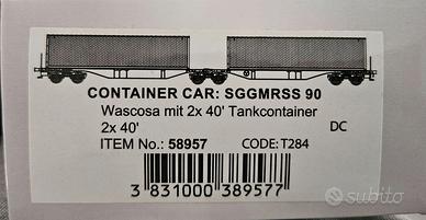 Vendo carro Sggmrss porta container DB Schenker della Mehano. Prodotto usato, ma in ottime condizioni.
