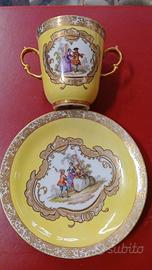tazza con piattino da collezione in porcellana tedesca manifattura Meissen prima metà dell'800