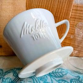 SET : Melitta 101 filtro porcellana anni '60 e 2 tazze bistrot in vetro anni 80 - Condizioni ottime Vedi foto,