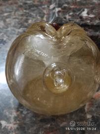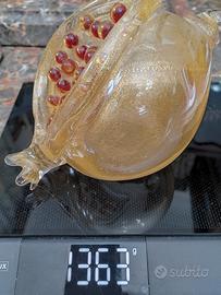 FRUTTO MELOGRANO VETRO SOFFIATO MURANO TRASPARENTE FOGLIA ORO