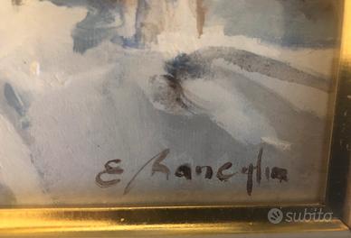 Dipinto olio su tela, firmato Edmondo Maneglia, rappresenta dei personaggio in un mercato invernale, opera in ottimo stato, misure del solo dipinto 24 x 30 cornice in omaggio allo stesso, in caso di spedizione il vetro verra’ rimosso per non danneggiare il dipinto.