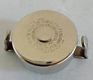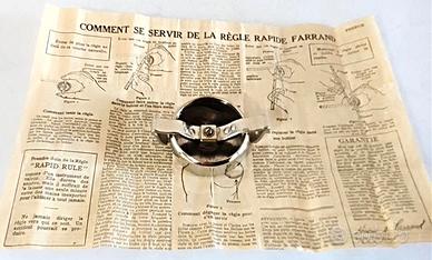 Un raro e bellissimo metro a nastro brevettato di "Hiram A. Farrand", nato nel New Jersey il 10 Dicembre del 1868 , studiò al Rutgers College laureandosi nel 1891 , si trasferì poi a Berlino dove iniziò a lavorare per la "Brown Company" , qui Farrand creò un righello che chiamò "Righello Rapido Farrand" che brevettò il 3 Gennaio 1922 . Lasciò nel 1927 la Brow Company per fondare la "Hiram A. Farrand" per produrre il nuovo metro a nastro facendo parlare tutto il mondo E' un pezzo tecnologico con oltre cento anni di storia che non utilizza molle o bobine interne , ma basa il suo funzionamento sulla tensione gestita dalle due barre. Una rara chicca per amatori e collezionisti . In perfetto stato conservativo , mai usato professionalmente , presenta solo qualche ossidatura sul nastro dovuta a inesorabile trascorre del tempo . Completo di scatola e foglio istruzioni originali in francese , la lunghezza del nastro e di M. 2 . Tutte le fotografie sono originali e parte integrante del metro e ne documentano lo stato reale . Il pezzo si trova Modena .
