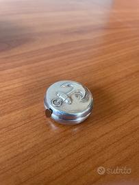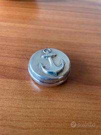 Il corpo in argento presenta un raffinato rilievo a forma di ancora, simbolo marinaro e di solidità, eseguito con ottima qualità artigianale.
