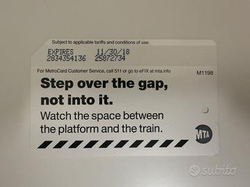 MetroCard - New York in perfette condizioni da collezione. (Scaduta il 30/11/2018). Posso valutare offerte. Vista la dismissione con il 31/12/25 questa MetroCard potrà acquisire valore nel tempo, come pezzo di storia della citta di NYC.