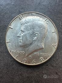 Vendo mezzo dollaro americano anno 1968, argento, con faccia del presidente Kennedy. Valore per moneta: 30€