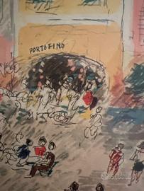 Vendo opera del maestro Michele Cascella, anni 50/60, veduta di Portofino , tecnica mista su carta (acquerello / gouache / inchiostro)