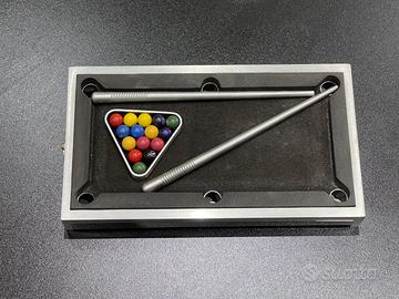 Vendo questo singolare micro biliardo in alluminio dalle misure 21x12xh3 cm, completo delle micro 15 palline + la pallina bianca.