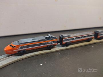-Vendo stazione ferroviaria con treno e binari MICRO MACHINE. Lo stato di conservazione è buono x tutti i pezzi. Come da foto mancano ( PURTROPPO ) alcuni pezzi dei binari. Si effettuano spedizioni a carico del destinatario. Prezzo: 40€