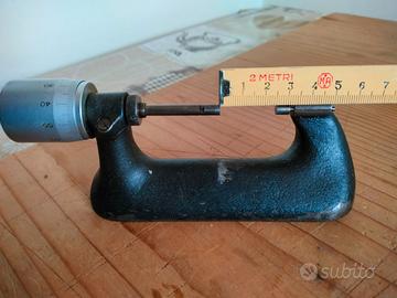 Micrometro da banco prodotto dalla ditta Svizzera Tavannes Machines Co. SA. Strumento utilizzato in origine per la misura di precisione, nel lavori di orologeria e in generale di meccanica fine. Viene quindi proposto per arricchire una collezione di strumenti d'epoca. Scala di misura da 25 a 50 mm, in buone condizioni generali. In particolare il tamburo graduato ruota regolarmente e la scala è perfettamente leggibile. La parte inferiore ha subito un uso improprio, i cui segni sono visibili in ultima foto. Rispetto a ciò, non essendo in grado di garantire la sua funzionalità come strumento ancora atto ad un utilizzo professionale (ad esempio per il lavoro dell'orologiaio), viene venduto così come è, visto e piaciuto, come oggetto da collezione vintage, lasciando la possibilità di verificarlo eventualmente in loco, a Carpi (Mo), Disponibile anche per la spedizione con Tuttosubito, e spese a parte.