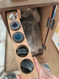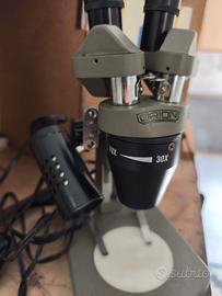 microscopio binoculare stereoscopico Auriga Orion mod. OAM30SR. anni '80/'90 con luce inclusa. condizioni eccellenti, scatola in legno con chiusura a chiave. set di lenti, istruzioni e accessori originali inclusi.