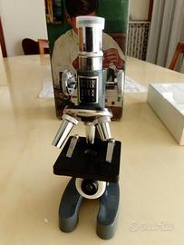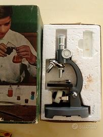 In condizioni perfette.200/400/600 ingrandimenti.Con diversi vetrini già preconfezionati con elementi naturali.Comperato in un negozio di ottica non da bancarelle giocattolo.