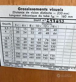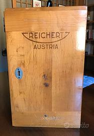 Microscopio monoculare professionale (tre ottiche), originale Reichert Wien, vintage anni 50. Cassetta in legno portastrumento con chiave. Funzionante e in ottimo stato.